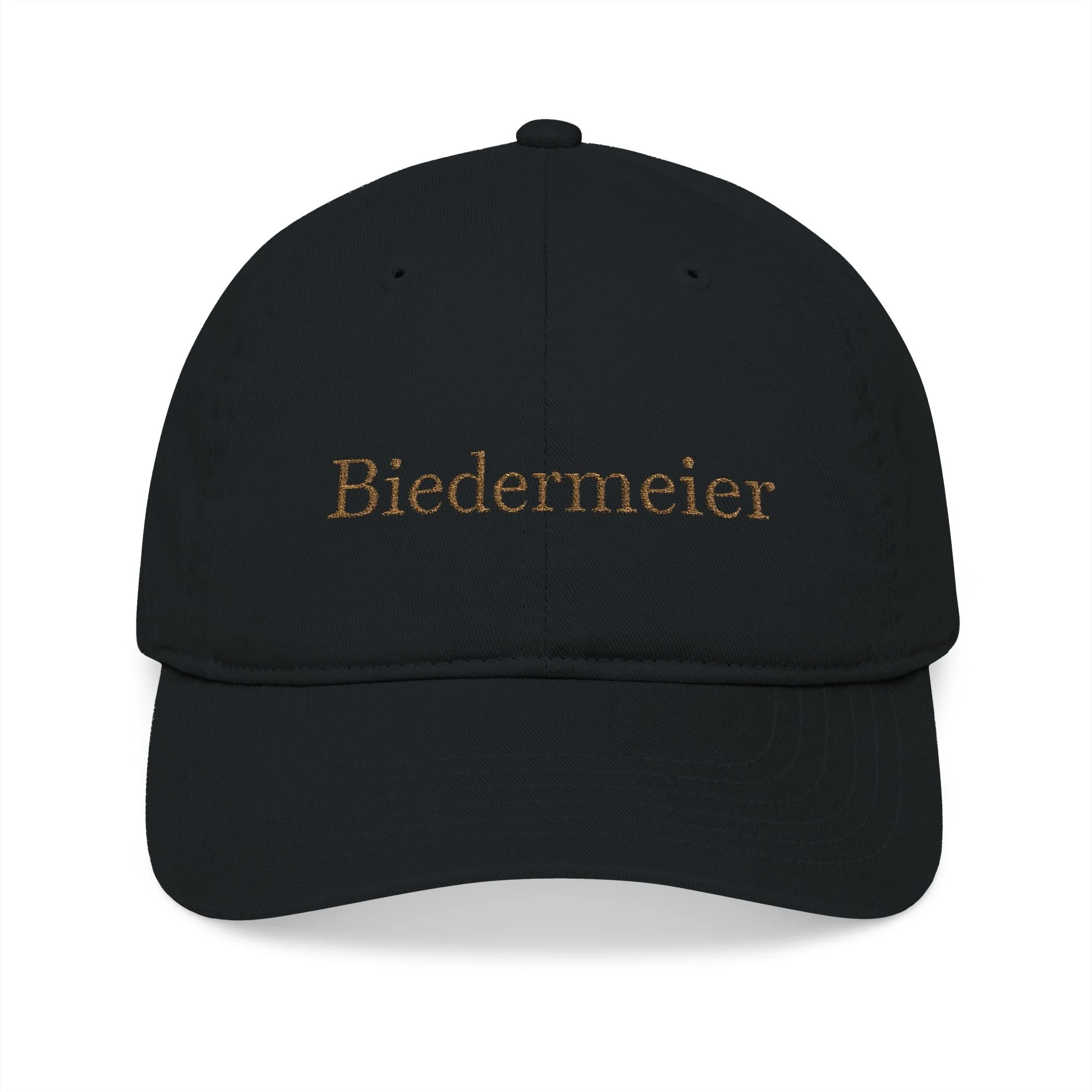 Black fabric with brown embroidery, 100% organic cotton with self-fabric adjustable closure